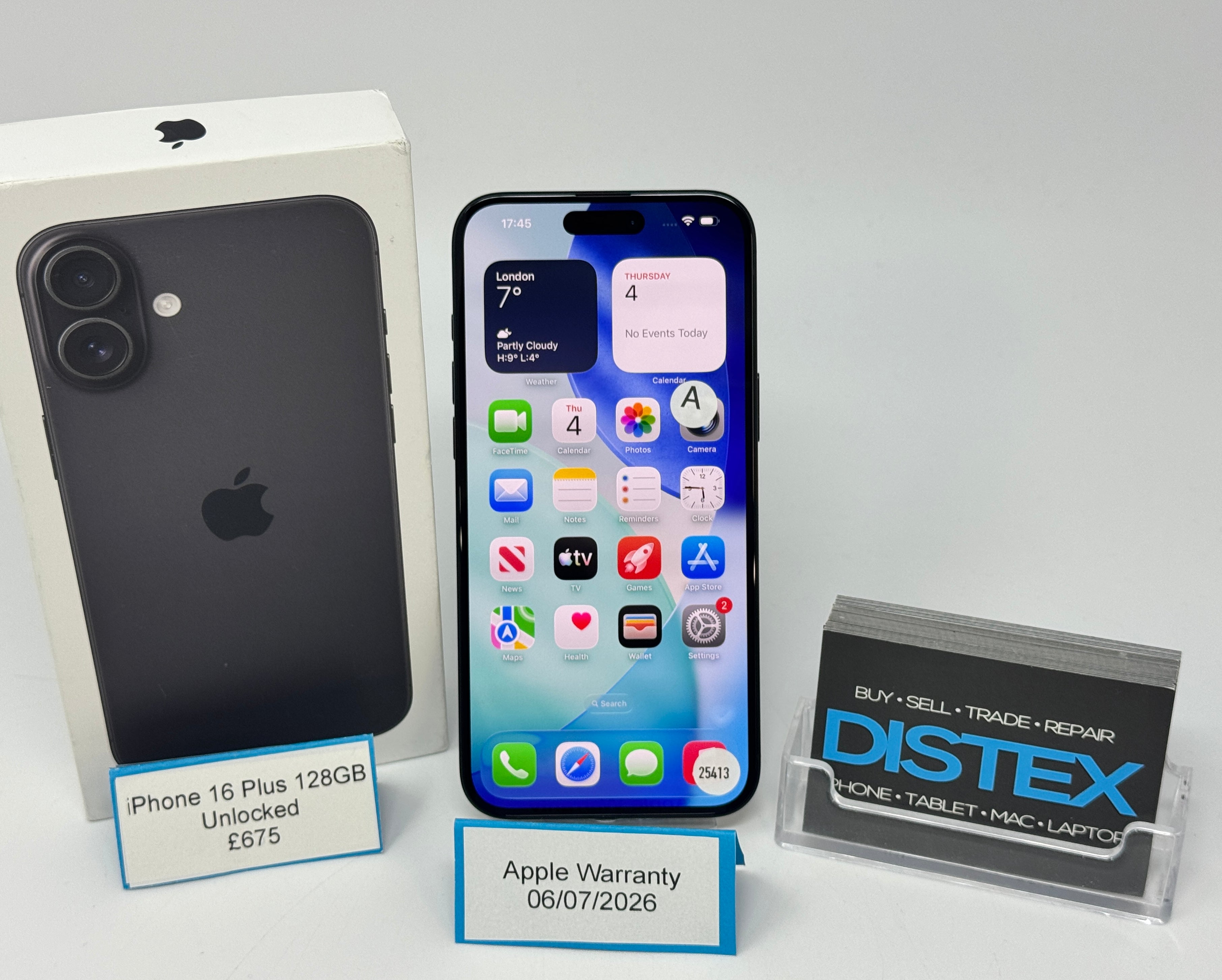 Apple iPhone 16 Plus 128GB Unlocked Black (A) Apple Warranty 06/07/2026 M25413